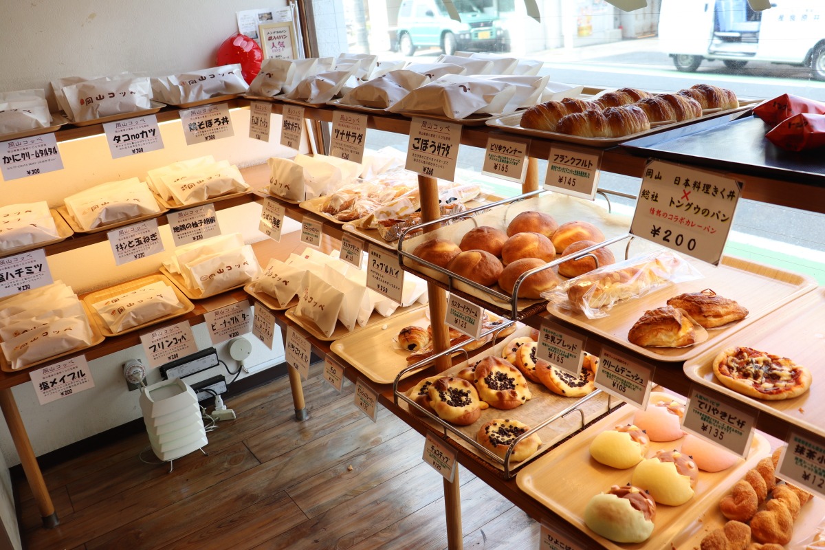 昔懐かしいパンが並ぶ、総社の老舗のパン屋さん。畑仕事には欠かせないと言われるほど馴染み深い、油パン、バターロール、岡山コッペが人気。岡山コッペは、色々なバリエーションが並んでいて、毎日食べても飽きない。ごぼう天にレモンドレッシングのかかった総社ドッグは、すぐに売り切れる。ボリュームのわりにお値段がお手頃。