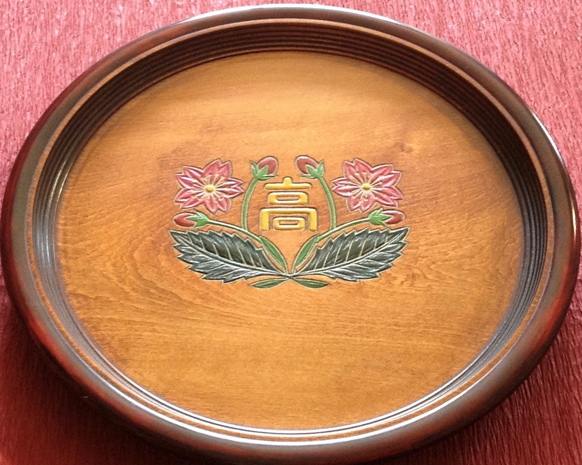 そのほか、冠婚葬祭での気持ちを表すために、家紋や名前などのオリジナルオーダーの依頼もあるそうです。 写真のお盆は、岡山市内の高校から依頼を受け制作したものです。