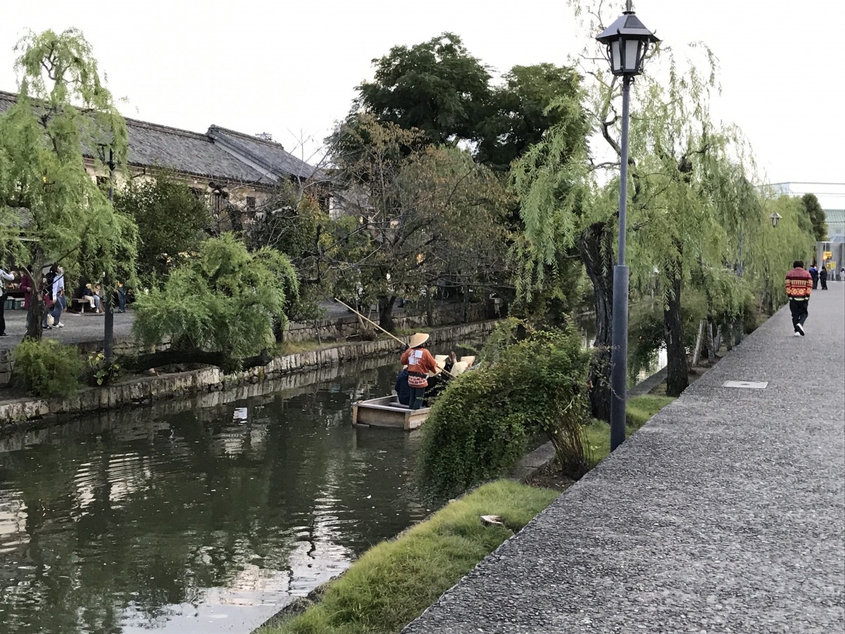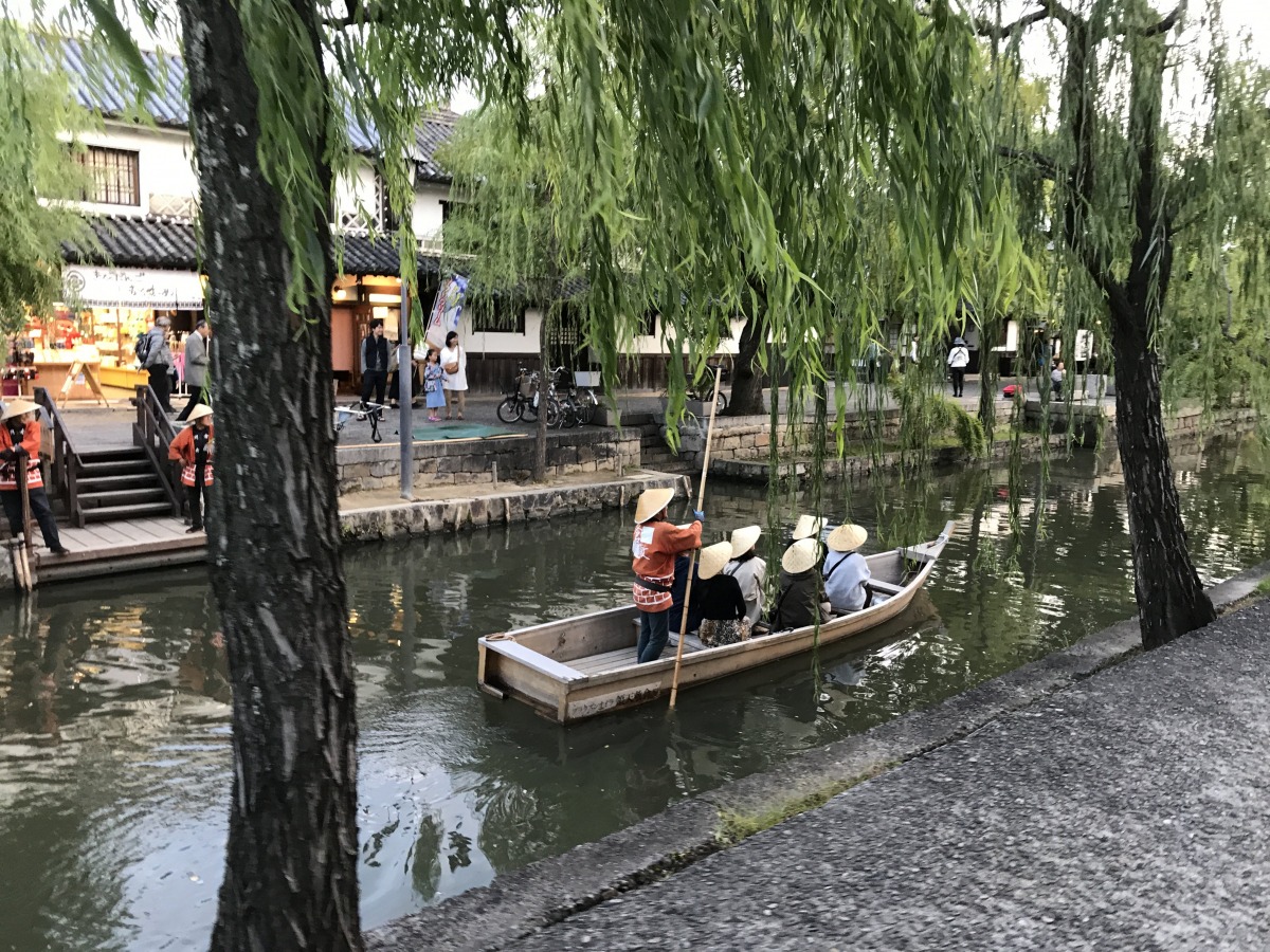 その倉敷川をかつて運搬のために往来していた川舟が現代に復活し、通年で運航されている「くらしき川舟流し」。
