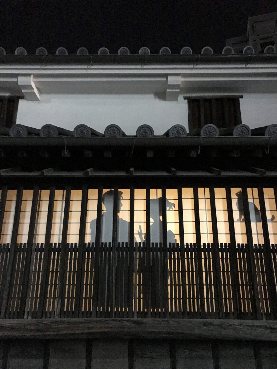 日暮れから深夜1時頃まで、季節ごとに趣向を凝らした影絵は歴史ある建物に映え、懐かしい気持ちになります。