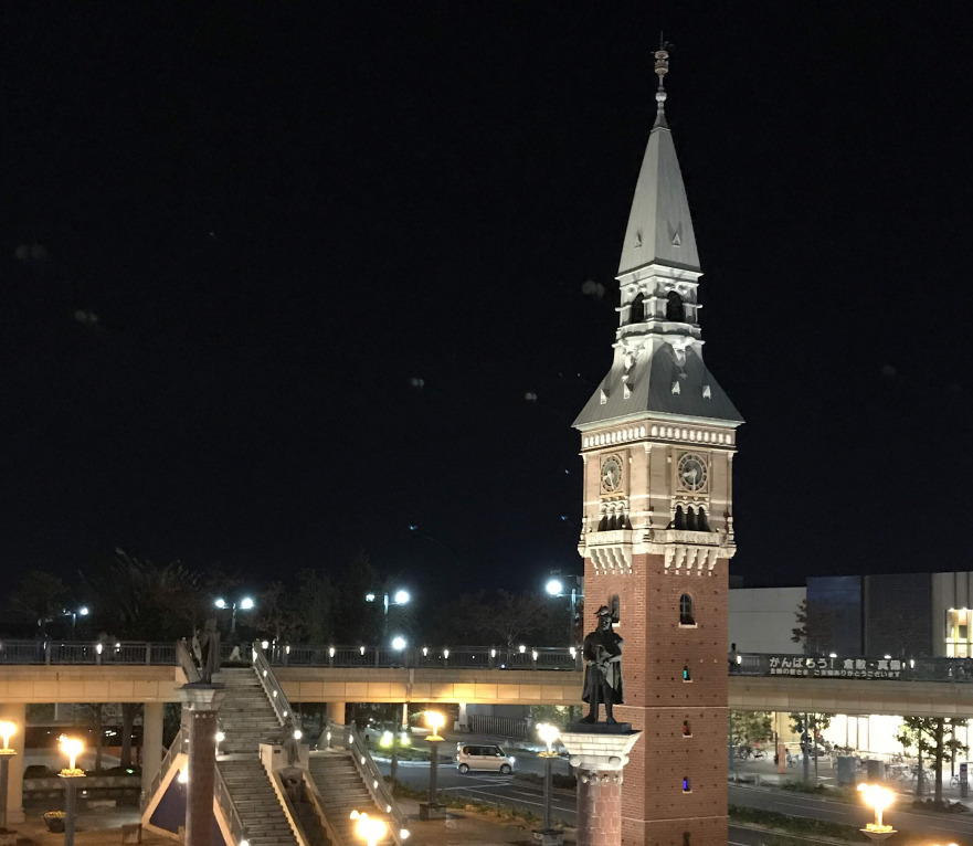 倉敷駅からお帰りの方は、ぜひ倉敷駅北側のライトアップも必見です。