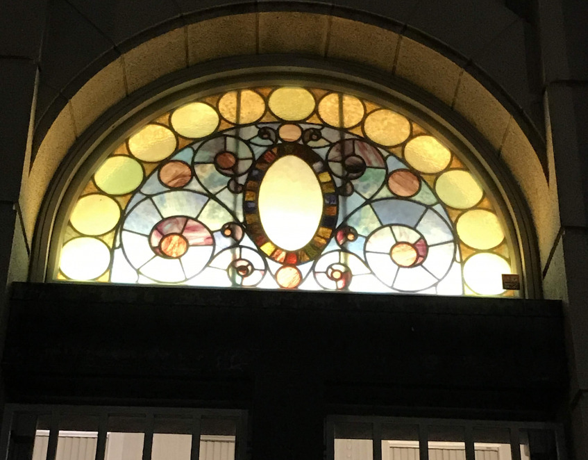 ステンドグラスの模様は、真ん中から小判、波、コインがデザインされているそうです。
