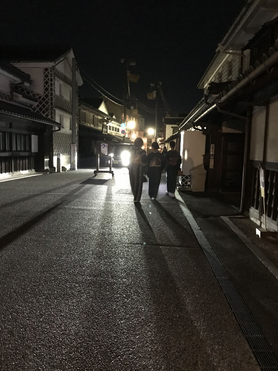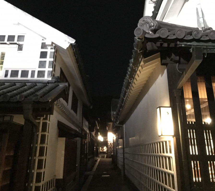 白壁の町の路地は、暗くなってきてもほのかに明るく、趣があります。
