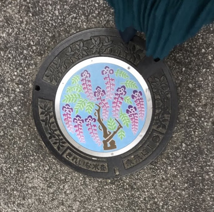 歩道では、倉敷市花・ふじの花が描かれたマンホールにも出会えますよ♪