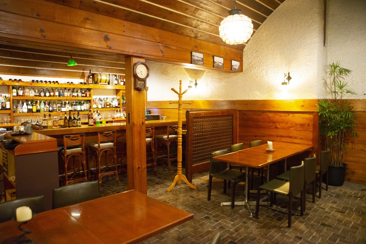 ホテルロビーから客室のほうへと続く廊下の細い階段を下りていくと、あたたかい木造りの扉の入り口が。店内に入ると、そこはまるで倉敷の隠れ家のような雰囲気。