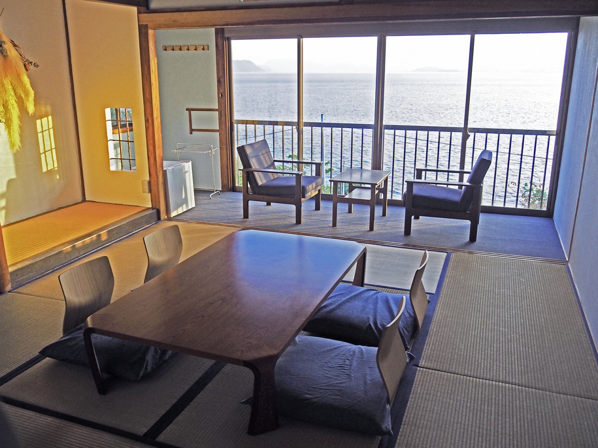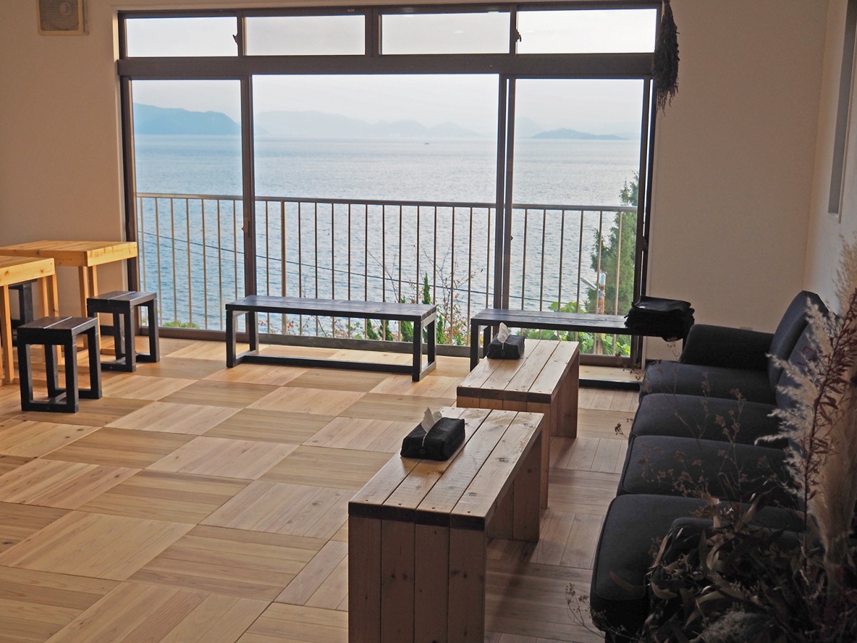 宿泊客以外でも楽しめる、カフェラウンジも瀬戸内海を一望。