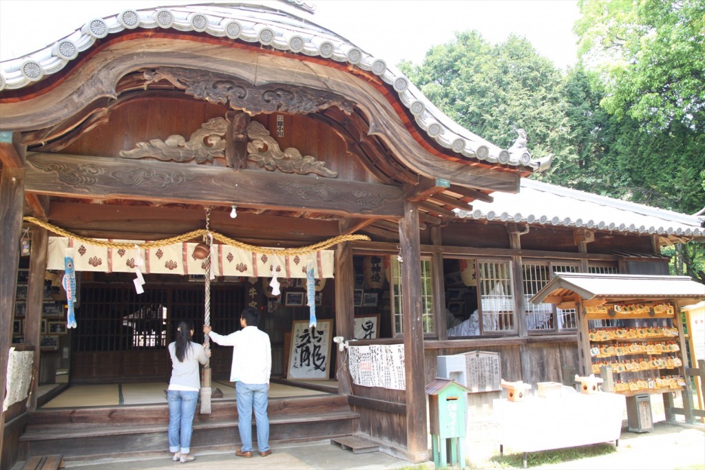 陸と葵海が浴衣デートをした夏祭りが行われた牛窓神社は、縁結びのご利益もあり、拝殿には奉納された婚礼写真がいっぱい。参道途中の亀山公園からは瀬戸内海が一望できます。