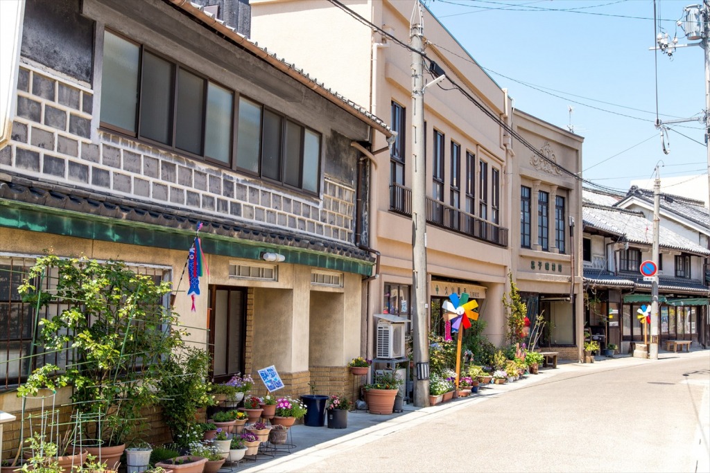 ライブを終えた葵海が歌詞をかいた紙を拾おうとして事故に遭ってしまう交差点のすぐそばにある五福通りは、全国的にも珍しい「看板建築」の商家が建ち並び、昭和のにぎわいや趣を感じられます。過去にも「ALWAYS 三丁目の夕日’64」や「とんび」「魔女の宅急便」などのロケも行われました。