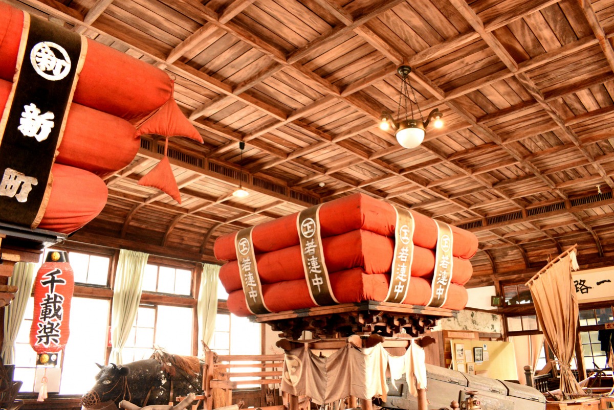 最も格式が高いとされる二重折上の格天井、角のゆるやかなカーブ。目をみはるような勇壮な旧講堂は必見です!旧高梁尋常小学校として建てられた西洋建築の中には、お祭りのだんじりや高瀬舟などの大型資料から、農機具や生活用品までもが大集結。2フロアに渡って、見きれないほどの充実ぶりですよ!