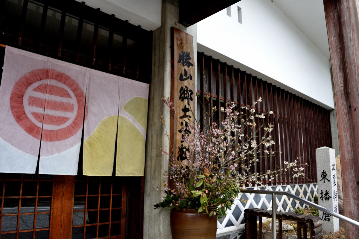 草木染ののれんの建物は旧勝山電報電話局だったとか。縄文時代の出土品、勝山藩主の書、鎧兜など。パワフルで迫ってくるような展示が多く、城下町らしさ満載です。美作国絵図などもなるほど興味深く見入ってしまいますよ。文豪・谷崎潤一郎の疎開の地ならではの、直筆の手紙、勝山生活を感じさせるリアルな品々など貴重な資料もみごたえアリです!