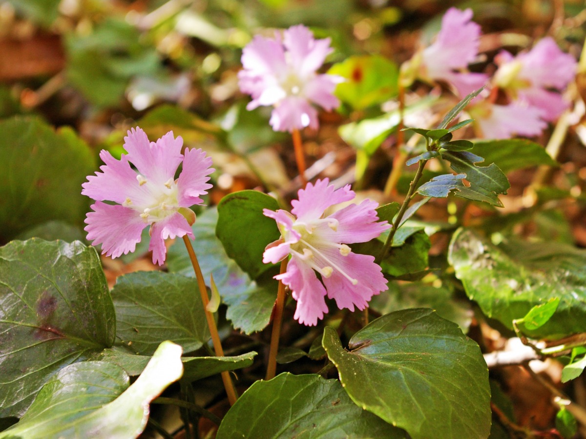 標高1,044メートルの伯州山には山野草イワウチワの群生地があり、春には愛好家が多く訪れます。イワウチワは日本固有種で、都道府県によっては絶滅危惧種にも指定されている稀少な花です。