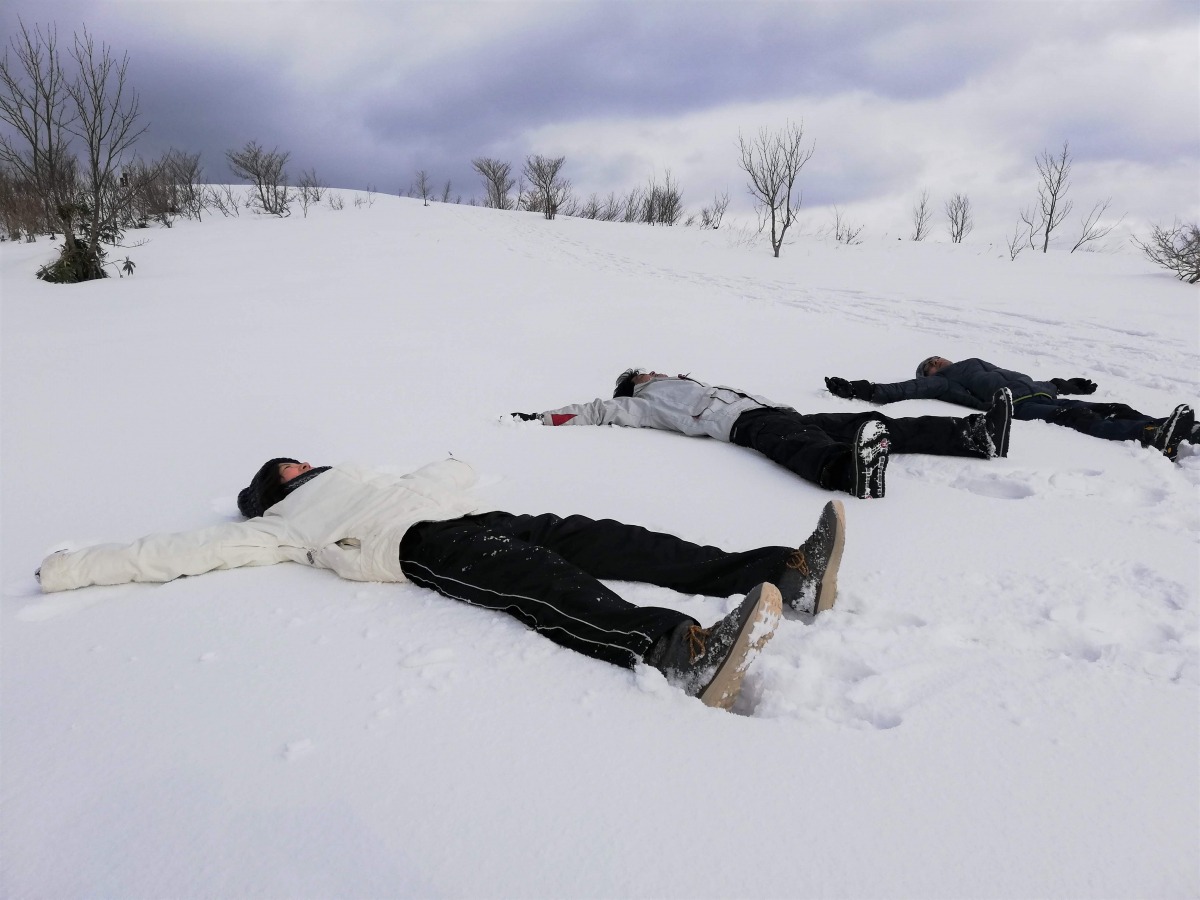 1メートルを超える積雪があるので、雪の上でジャンプしたり寝転がったりと、普段できない体験も。