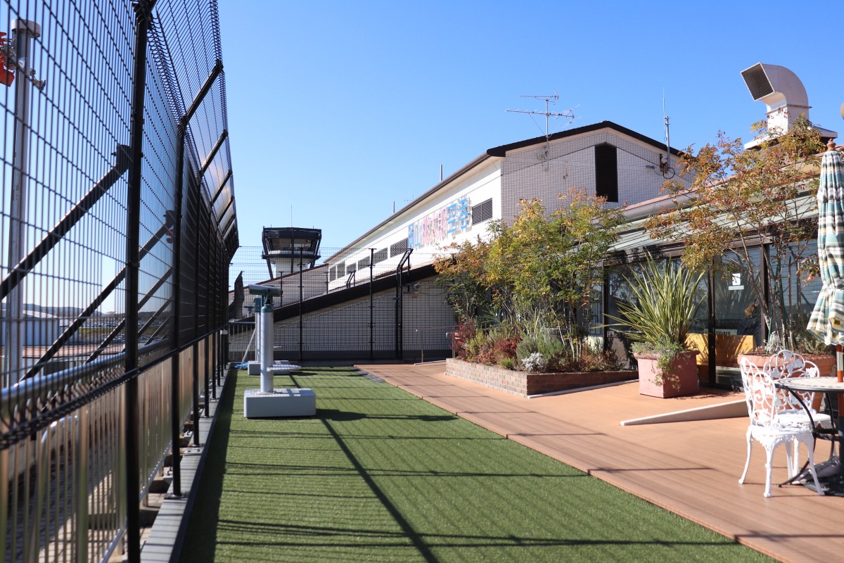 目の前で迫力のある飛行機の離発着を見ることができます。飛行機が来るまでの間、人口芝生の広場でミニ遊具で遊ぶこともできます。眺めがいいので、お子様と一緒にベンチに座っておやつタイムを楽しむのもいいですよ。