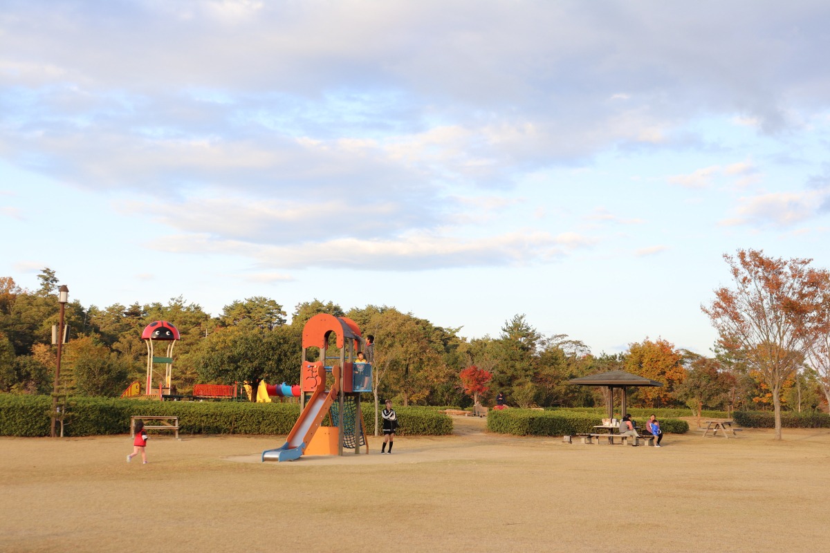 遊具のある子供広場、テニスコート、パターゴルフ、野球場を備えた公園です。子供広場の遊具は、アスレッチック遊具や、ロープを登って滑る、高さのある滑り台など、親子で遊びたくなる遊具がたくさんあります。広い広場では、バドミントンや、ボール遊び、サイクリングを楽しめます。岡山桃太郎空港の滑走路に沿った展望広場は、飛行機の絶景ポイントです!!夕日もきれいに見えますよ。