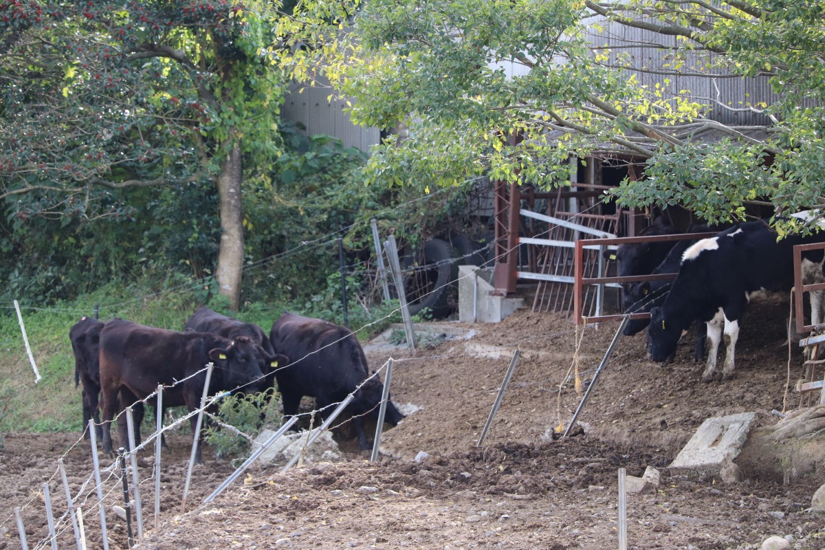 放牧されている牛を見ながらテラスでジェラートを頂いた後は、牛舎に行って牛と触れ合うこともできます。子牛もいますよ。牛舎に行く途中には、孔雀もいますよ。