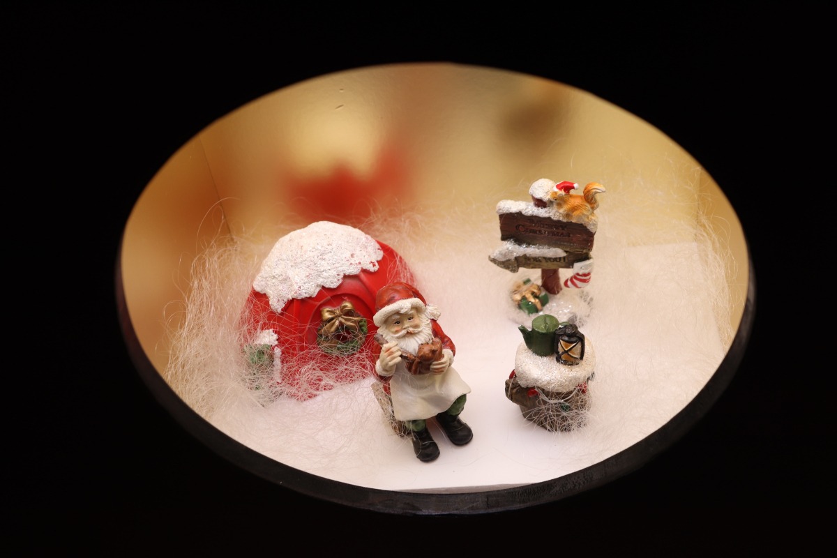 今年のテーマは、クリスマスをホテルで楽しんでもらいたいという願いを込めて「ギフト」です。高さ約2.5mのツリーは、白×シルバー×淡いブルーで作られています。ホテルフロントのパネル背景が次々と変わると、クリスマスツリーも色々な表情を見せてくれ、見ていて楽しめます。