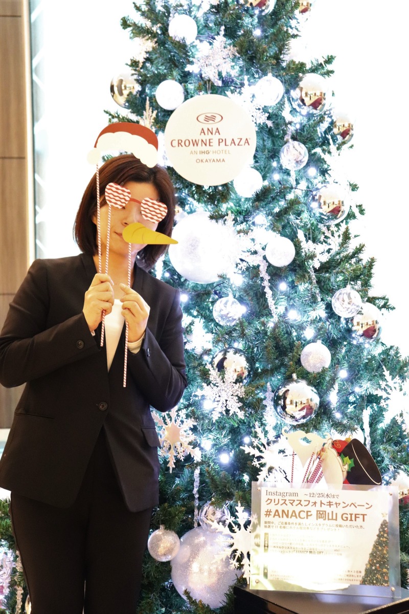 12月25日までの期間中、ホテル公式アカウントをフォローして、ホテルのクリスマスを楽しんでいる写真をインスタグラムに投稿すると、ホテル宿泊券などが当たる「クリスマスフォトキャンペーン#ANACP岡山GIFT」を実施中です。