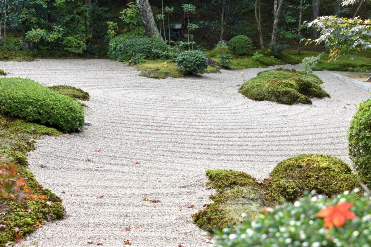 紅葉で有名な古刹ですが、方丈前や、般若庵で見られる枯山水のお庭も見ごたえありますよ!水の流れをあらわす砂紋を眺めながら、瞑想モードにひたったり。湯豆腐やお抹茶をいただきながら心静かに過ごしたり。後に京都に多くの名庭をつくることになる雪舟の、感性の原点ともいえる修業の地でもあります。