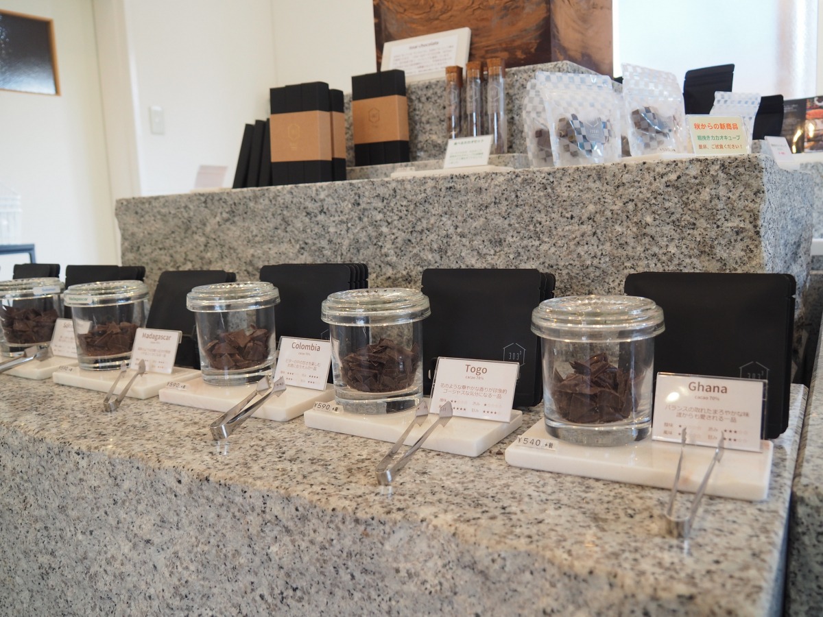 試食をすることができ、チョコレートプレートは、ガーナ、トーゴ、コロンビア・・・ 国ごとのカカオによって香りと味が全く違い、驚かされます。
