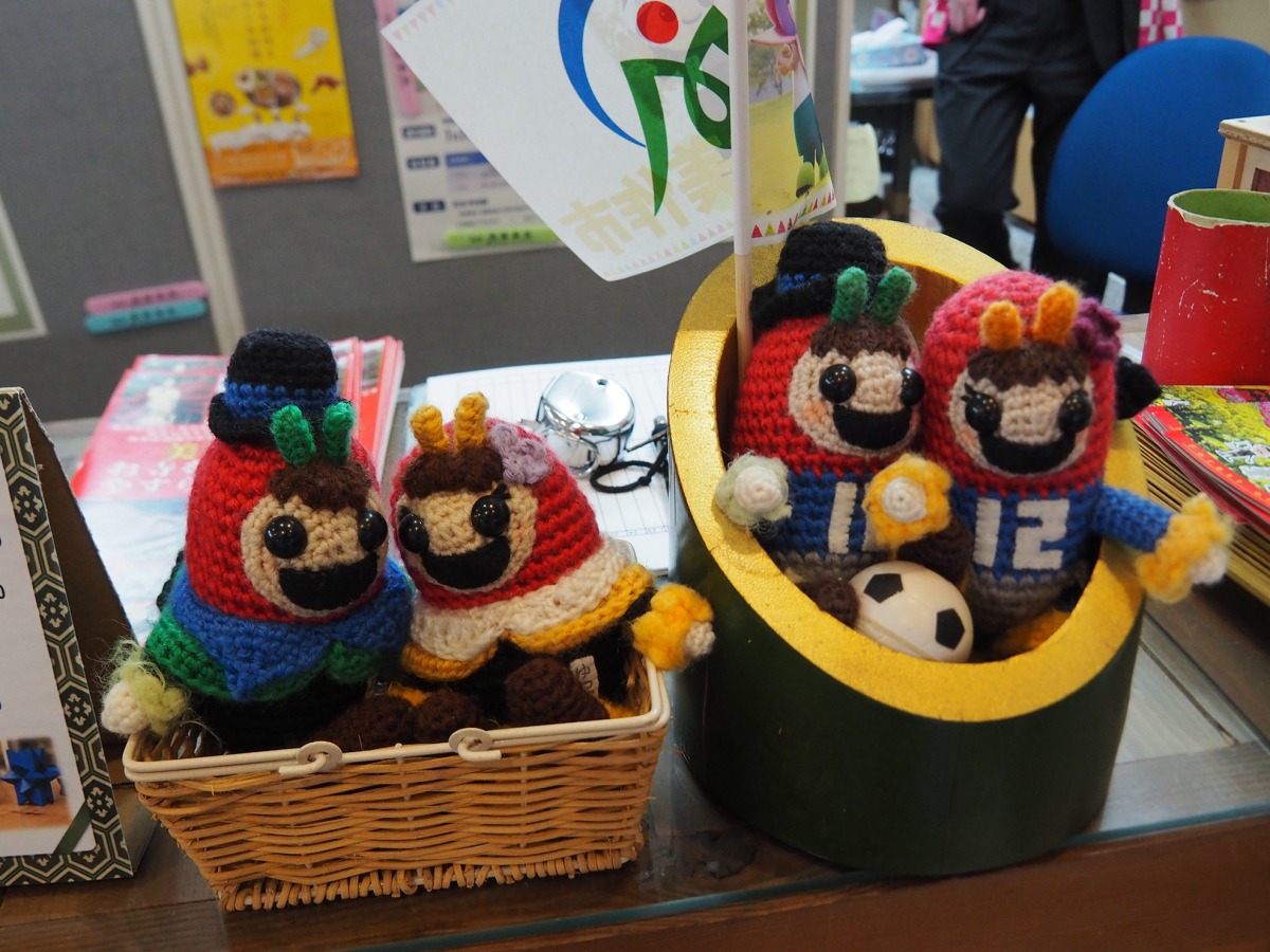 受付には持ち歩き用としてレンタルできるマスコット、ほっピー&ゆっピー(湯郷温泉のゆるキャラ、蛍です)。