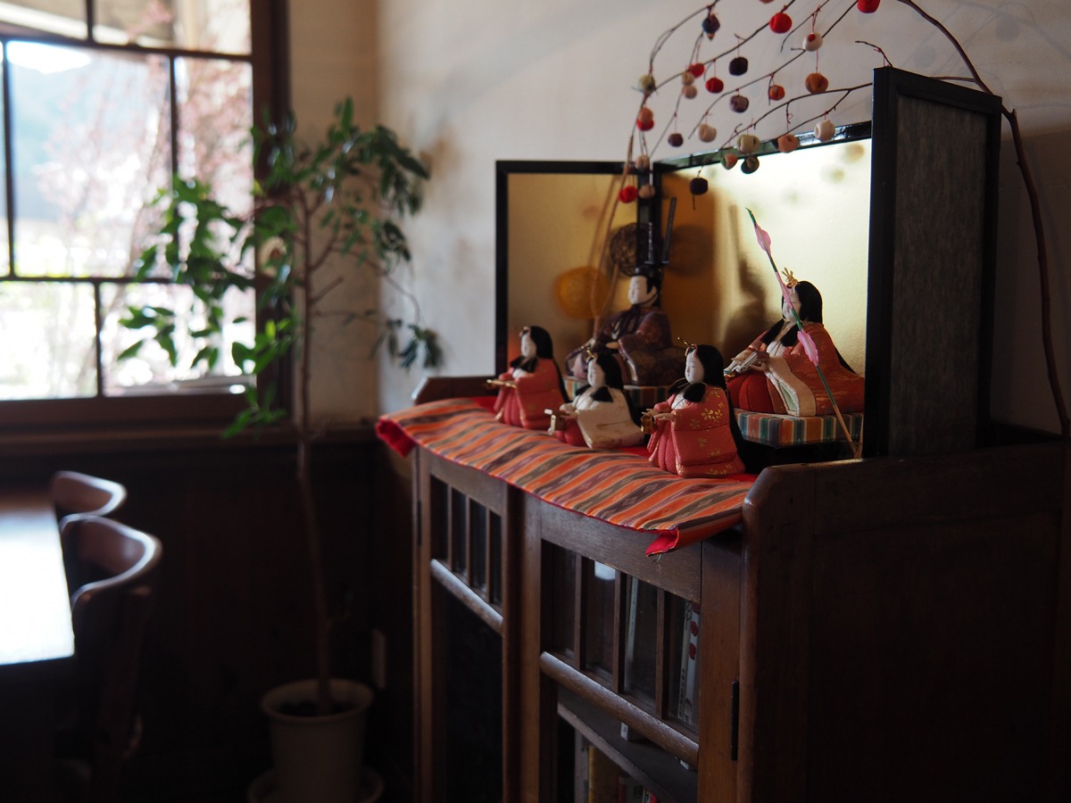 お店の中にひな人形が飾られていることもあります。こちらは天然酵母パンを扱う人気店「あいゆうわいえ」。おしゃれな家具とのコラボレーションがたまりません。
