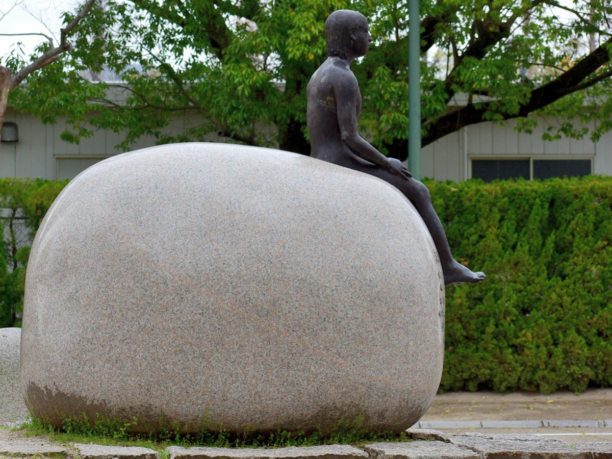 水の粒に乗って想いにふける少女は、小学校の卒業文集に綴ったオリンピックへの夢を本当に叶えてしまいました!岡山の高校時代に1964東京オリンピック代表選手に選ばれ、その後実業家などとしても活躍した木原光知子さんです。2020東京オリンピックが延期となった今こそ、夢をあきらめない事の大切さを伝えてくれるモニュメントですね。