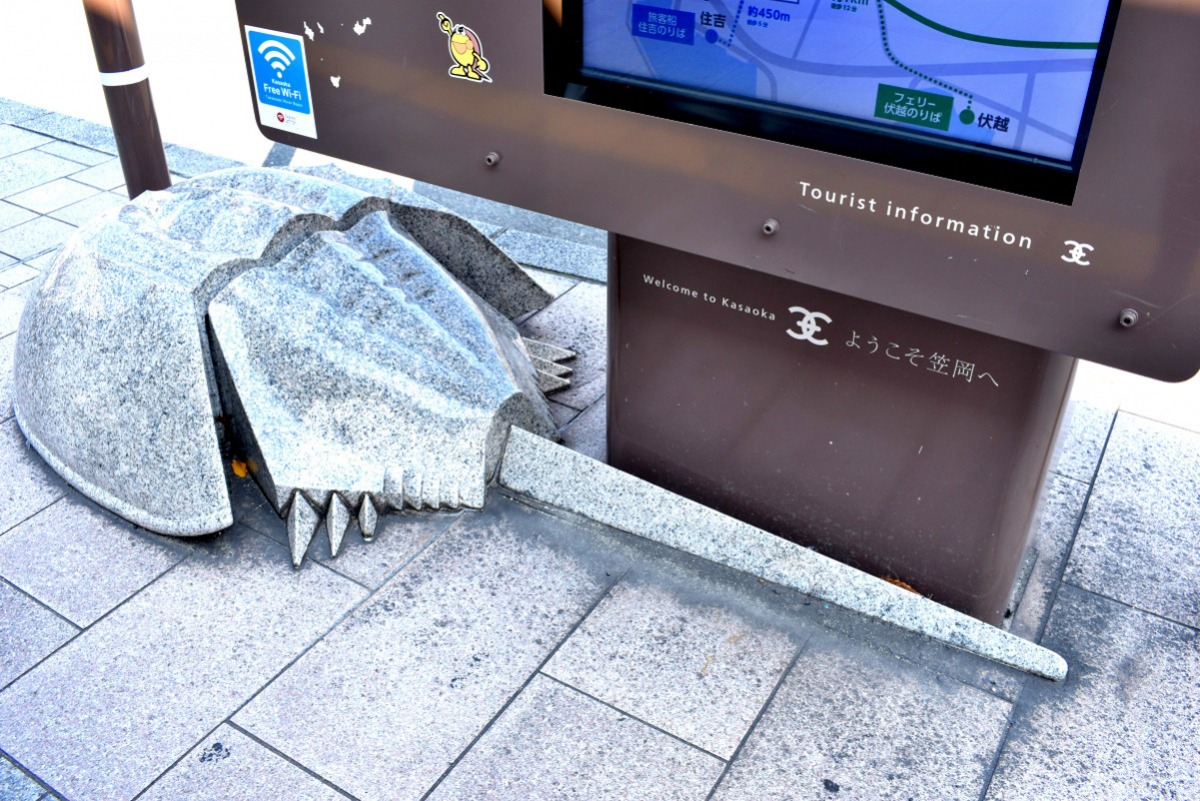 砂はどこですか?カブトガニ像(笠岡市/JR笠岡駅前)