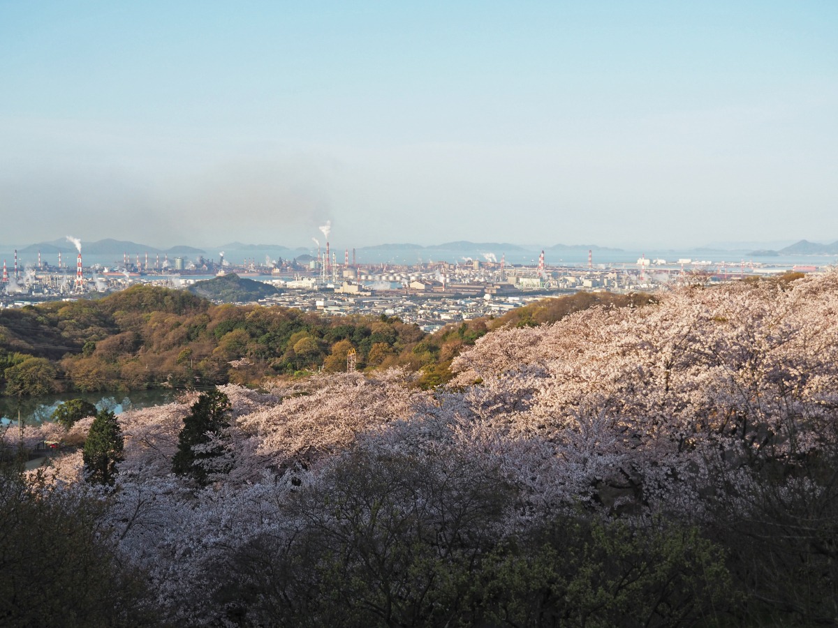 丘になっていて、桜越しに水島コンビナートが見られるスポットもあります。