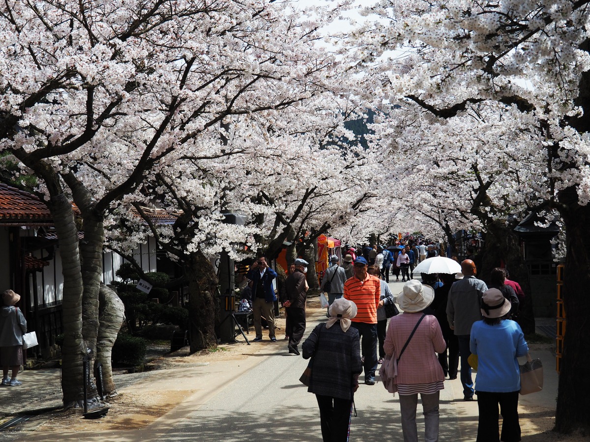 出雲街道新庄宿の宿場町に、5.5mおきに132本のソメイヨシノが咲き誇り、桜のトンネルのようになります。日露戦争での戦勝を記念して植えられた桜なのだそうです。