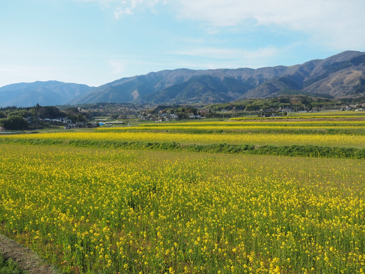 同じく2019年4月18日に、奈義町現代美術館の北側に広がる菜の花畑にも行ってきました。