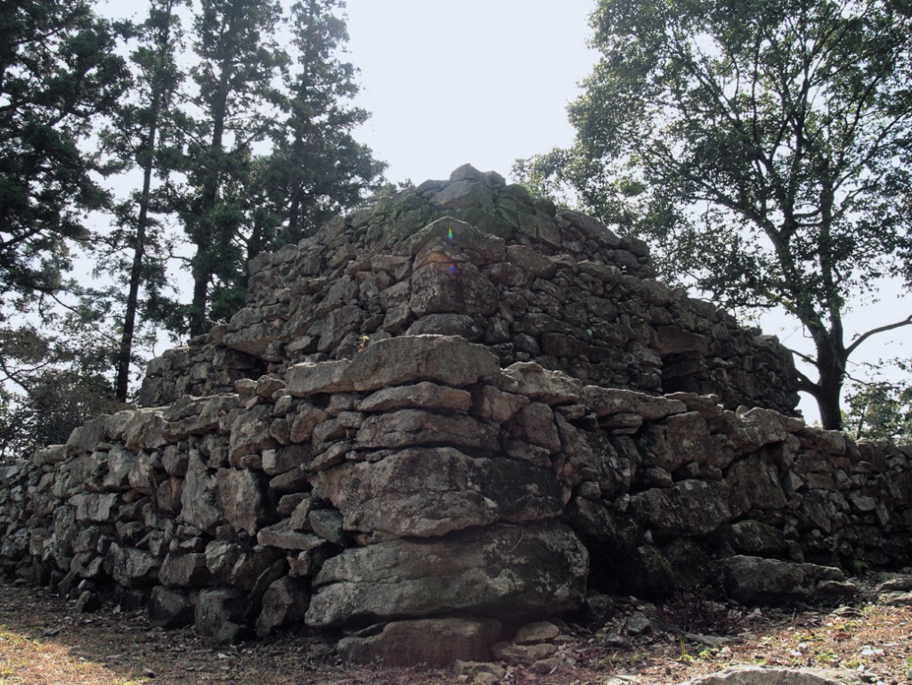 熊山山頂にある石積みの遺構。3段からなり、初段の一辺は長さ7.8m。「戒壇」に似た特殊な形をしており、ピラミッドを思わせます。