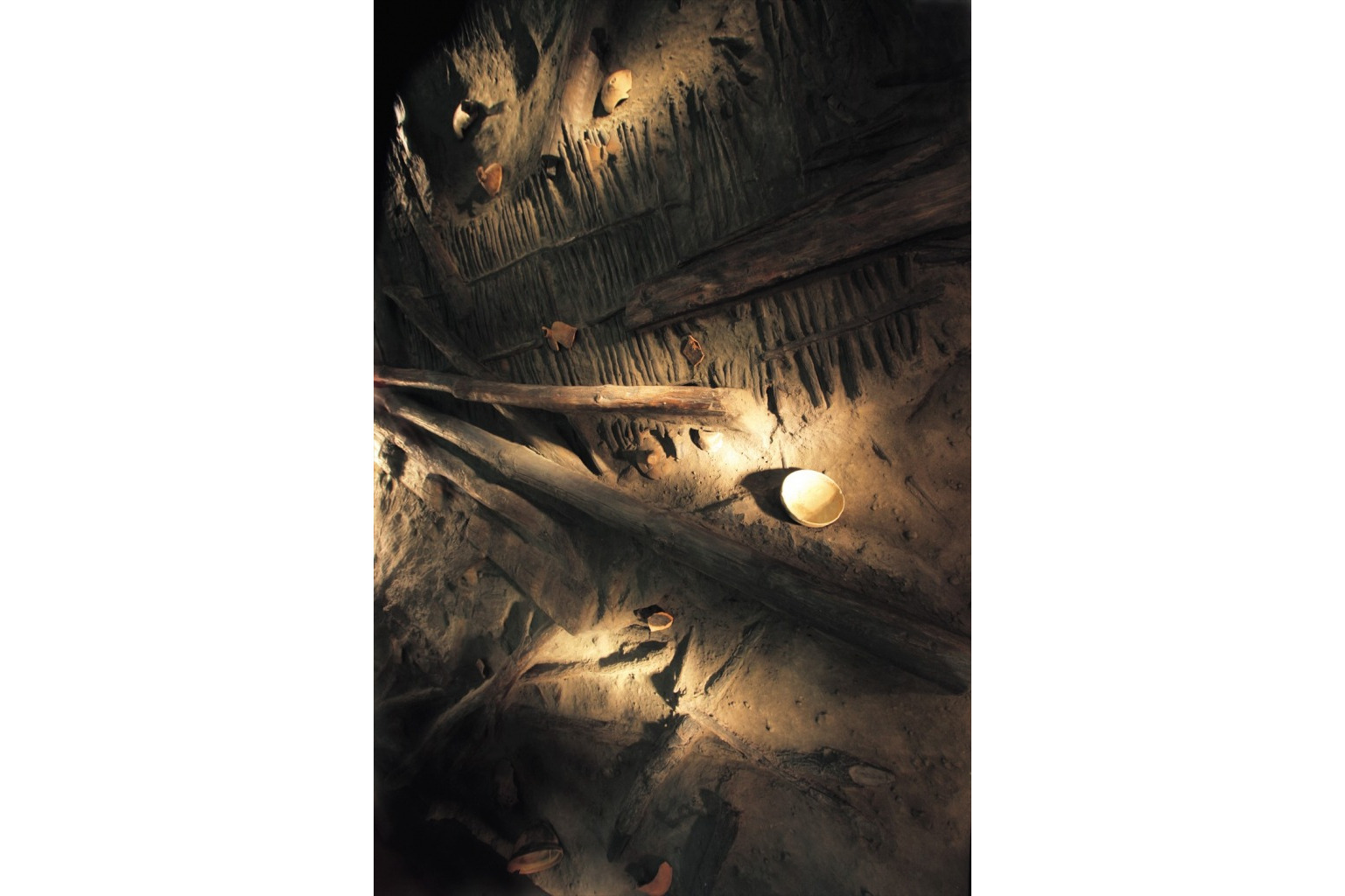 東西200m余、南北100m余に渡って厚さ1mの貝層が広がる集落遺跡。遺物として石器や弥生式前期の土器が多数出土。現在は貝塚や竪穴住居が復元された国指定の史跡公園となっています。