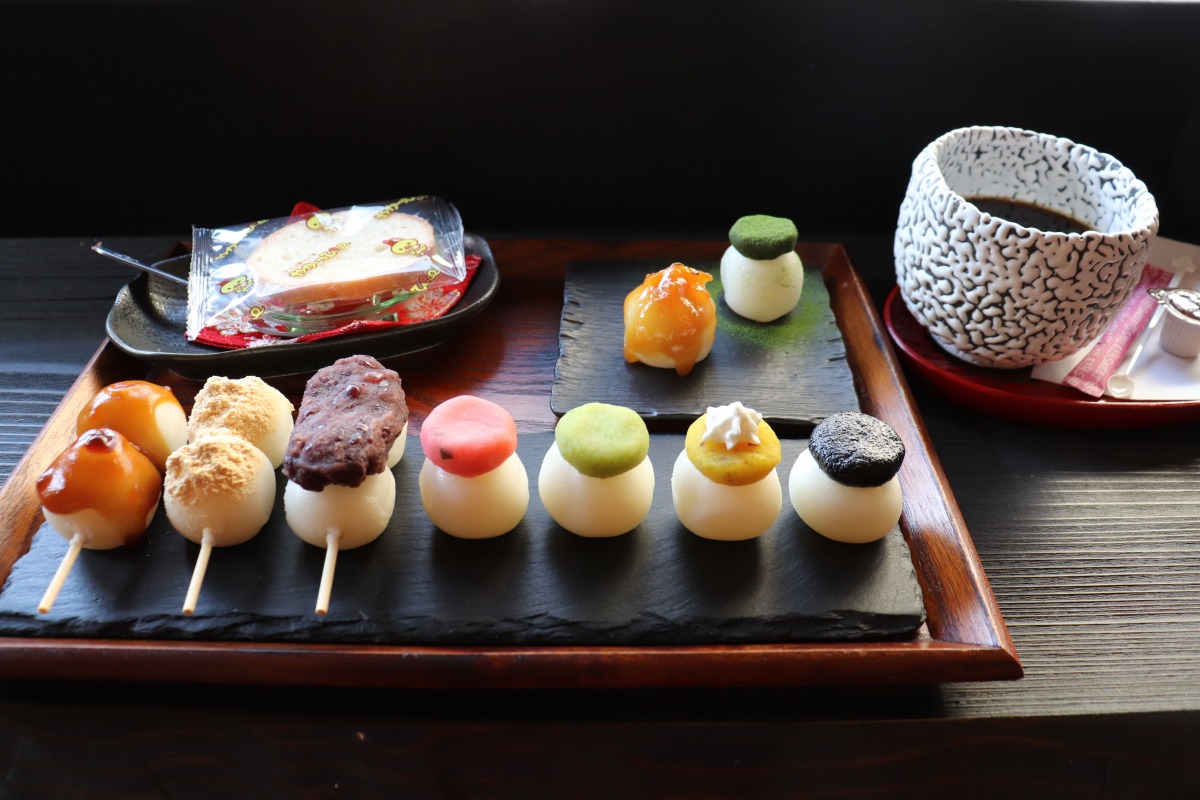 インスタグラムでよくお見かけする「だんご行列」を頂いてきました‼「わぁ~♡」と思わず声にしてしまうほど何とも言えない可愛さ♡。矢掛町の大名行列のイベントにちなんで考案されたこちらのメニュー、ネーミングの通り大名行列に見えます。コーヒーも美味しく、器もおしゃれです。