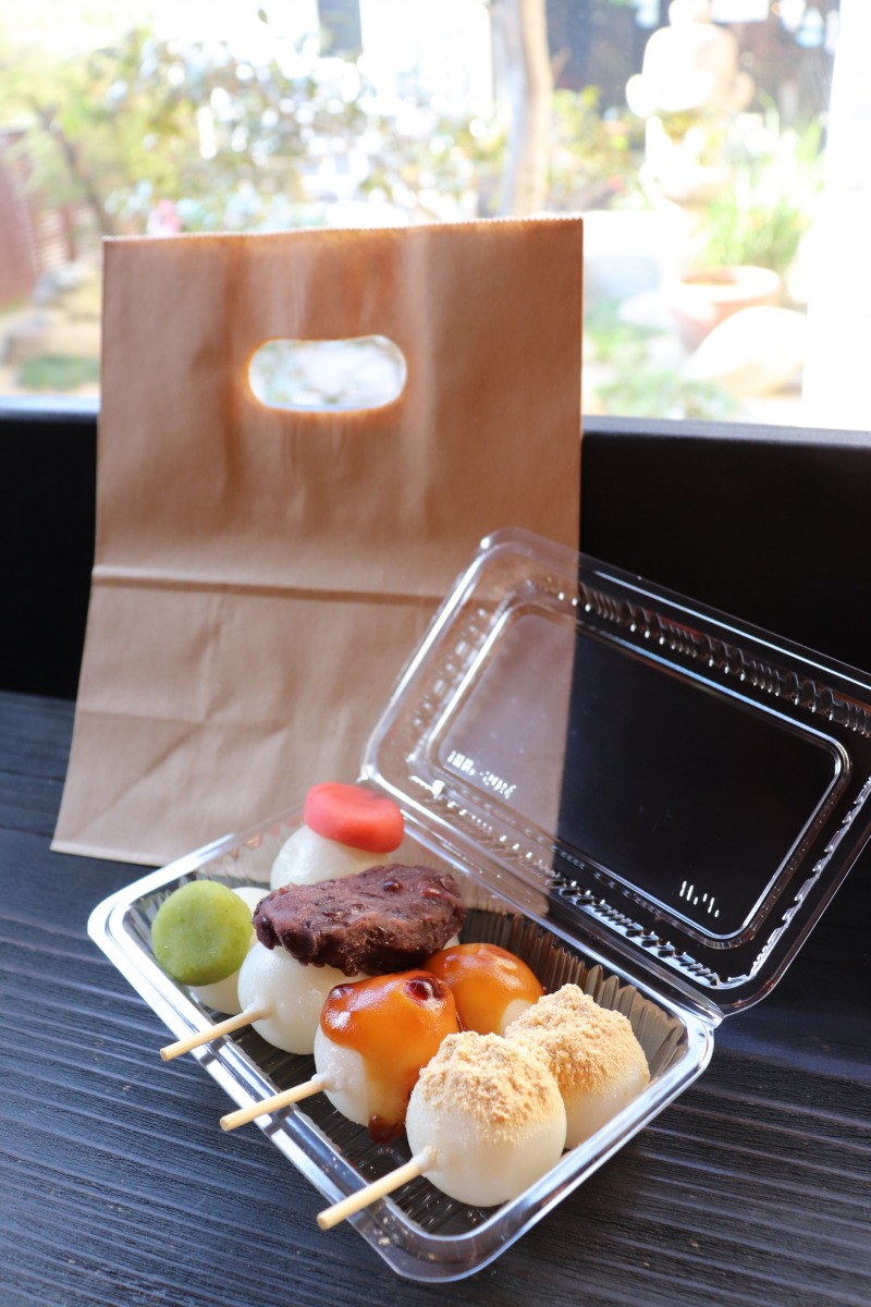一つ一つのお団子がボリュームあるので、私は全部食べれませんでした。そんなときは、お持ち帰りパックを用意してくださいます。バックもおしゃれ感漂うデザインです。