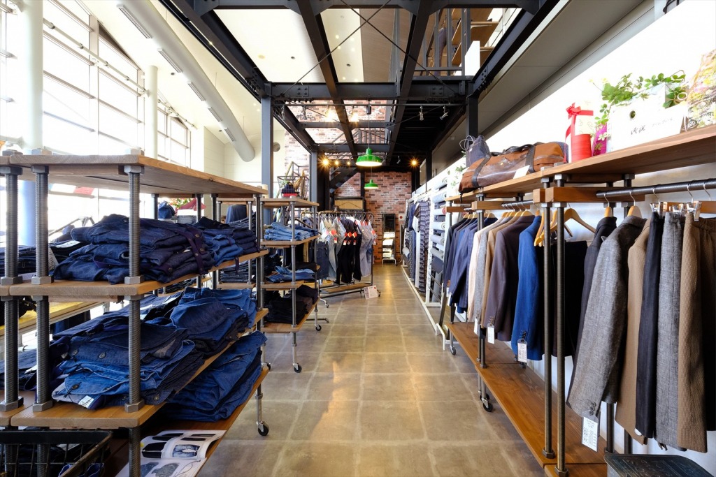 オリジナルのジーンズや小物を取りそろえたショップ、規格外商品をリーズナブルな価格で販売するアウトレットショップも併設。