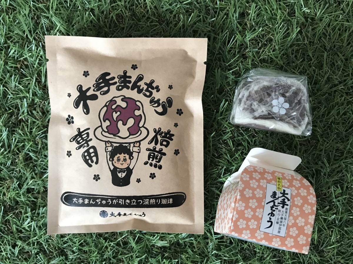 さすが、専用に焙煎を重ねた逸品だけあり「ぼっけー」「もんげー」「でーれー」(岡山弁で「すごく」の意味)合いますよ。おまんじゅうには緑茶という方もぜひ一度試してみてほしいです。贈り物にうれしい、ドリップコーヒーと大手まんじゅうのセットもあります。