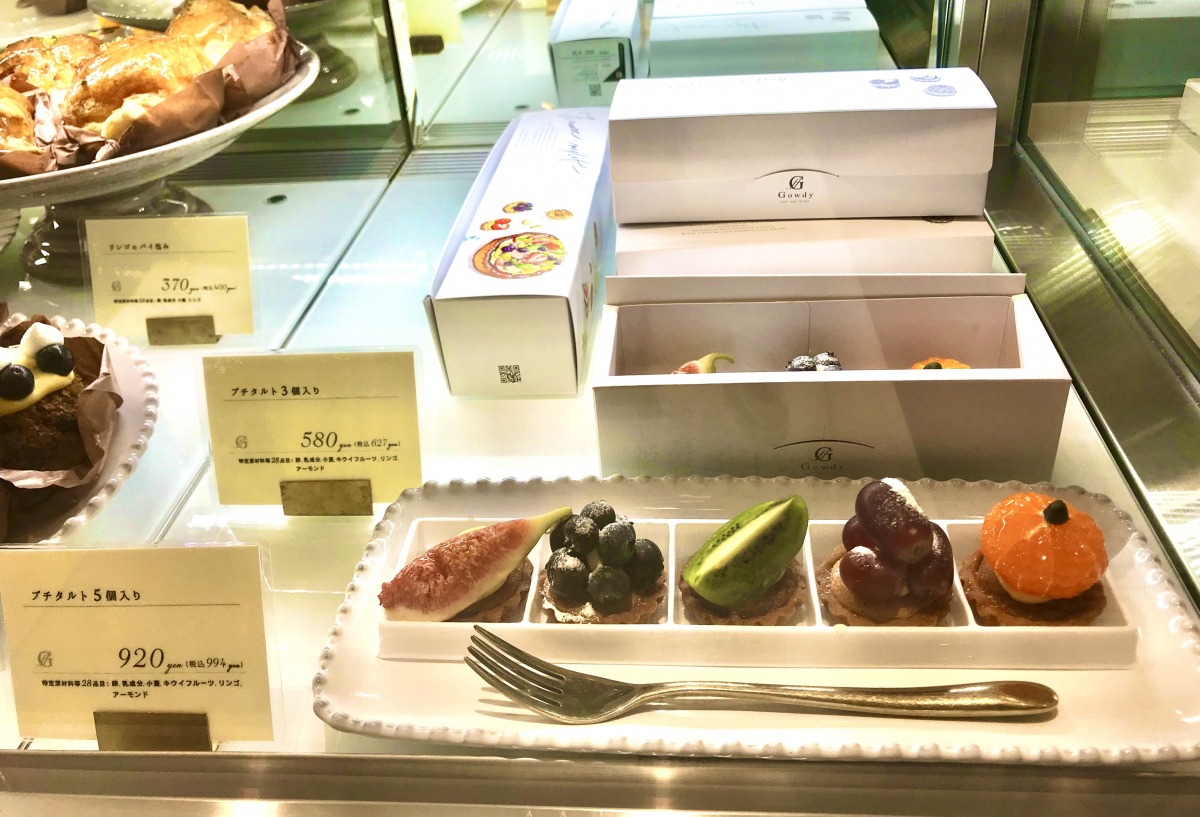 Gowdy―そう描かれたおしゃれな扉が目に飛び込んできます。キラキラした宝石のように輝きを放っているのは、季節のフルーツタルトをはじめ、目でも楽しめるスイーツたち。