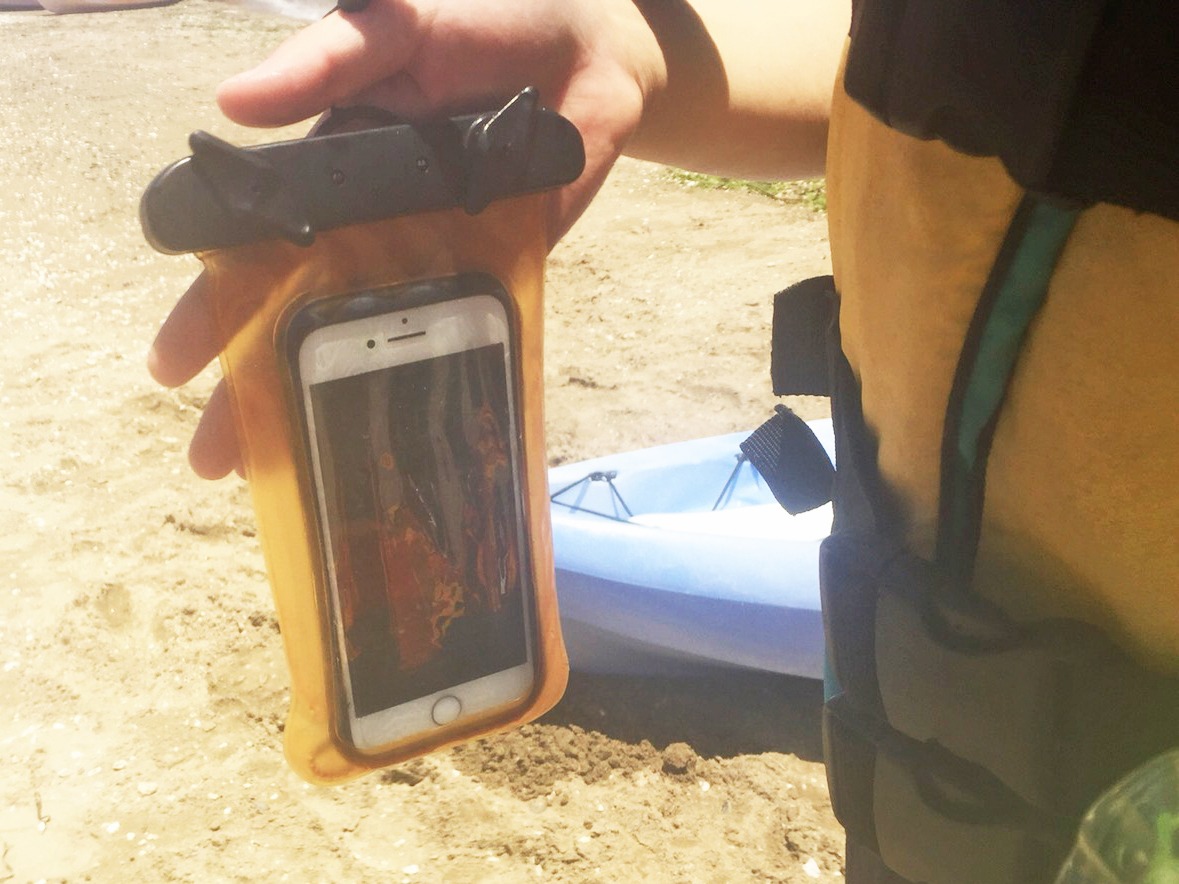 ライフジャケットと、スマートフォンの防水ソフトケースを貸していただけました。海の上でも安心して撮影ができます。