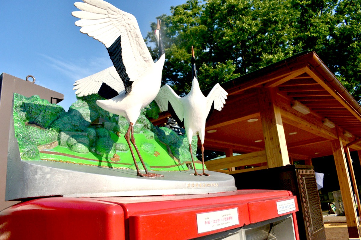 吉兆とされる「瑞鳥」といえば鳳凰、はたまたタンチョウヅルか。そのタンチョウが優美に舞う、まっこと目出度きポストです!実は日本の野鳥の中では最大級の大きさなんですって。その雄大な羽ばたきを見られるとあって、お正月のタンチョウツルの園内散策には多くの人が訪れます。お濠ではボートになったタンチョウツルが、乗り物としても楽しませてくれますよ!