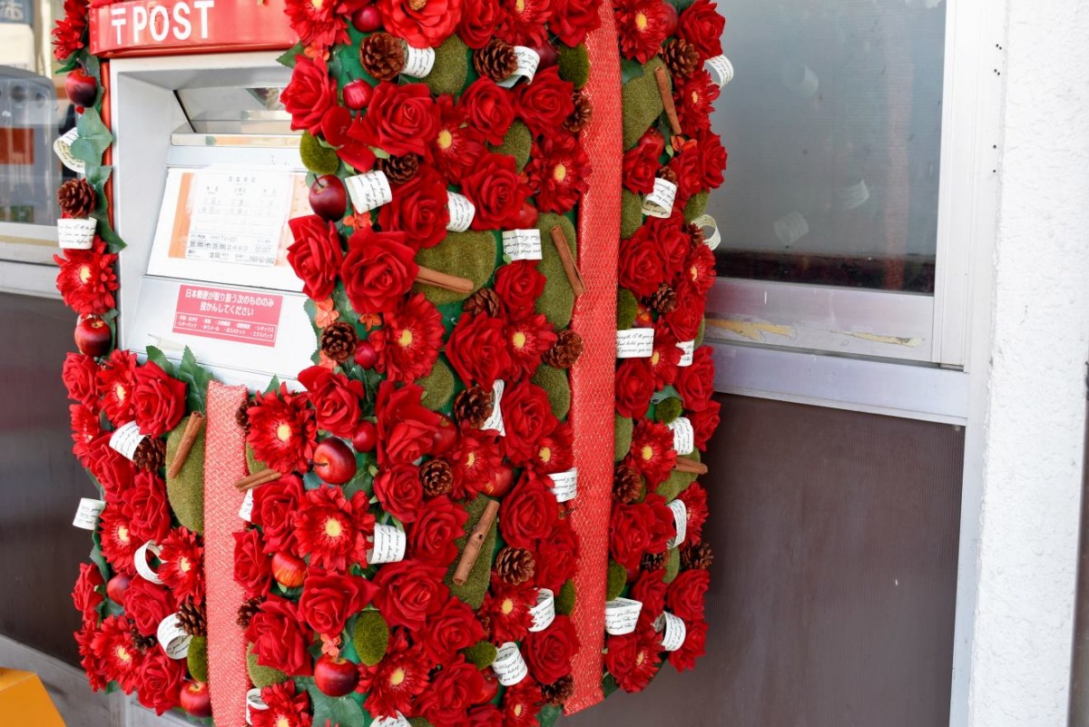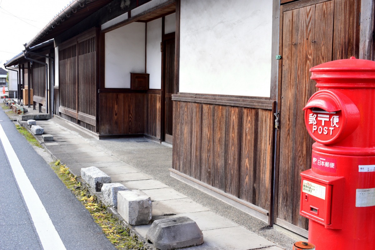 祝日本遺産認定!「ジャパンレッド」発祥の地は、郵便局まで赤く染まっています。景観に合わせて観光地などに設置されている「書状集箱」は、郵便事業開始当初のポストを模したものなんだとか。ポストの黒色が、人類最古の赤色顔料・ベンガラの紅色を際立たせてくれていますね!美しい町並みが、山の中に突然現れた時の感動。たまりませんよ。