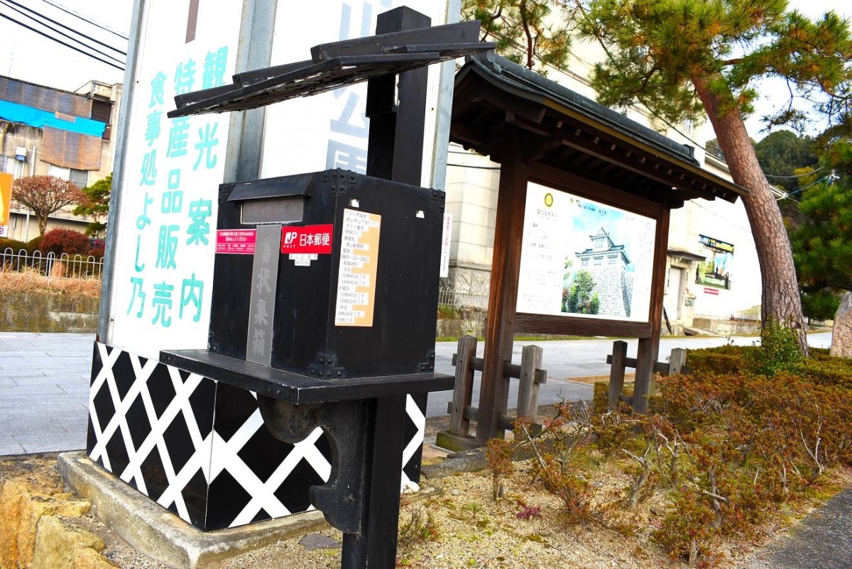 松の木のたもとには、やはり和テイストの書状集箱がぴったりです!現代の飛脚さんにひとっ走り、文を届けてもらいましょうか。観光名所であることの証!といっても過言ではない書状集箱があるのは、津山城の入り口・津山観光センター。銘菓に銘酒、津山ロールにホルモンうどんなど!ローカルグルメの宝庫なので、カゴが重くなる程あれこれ買ってしまいますよ。