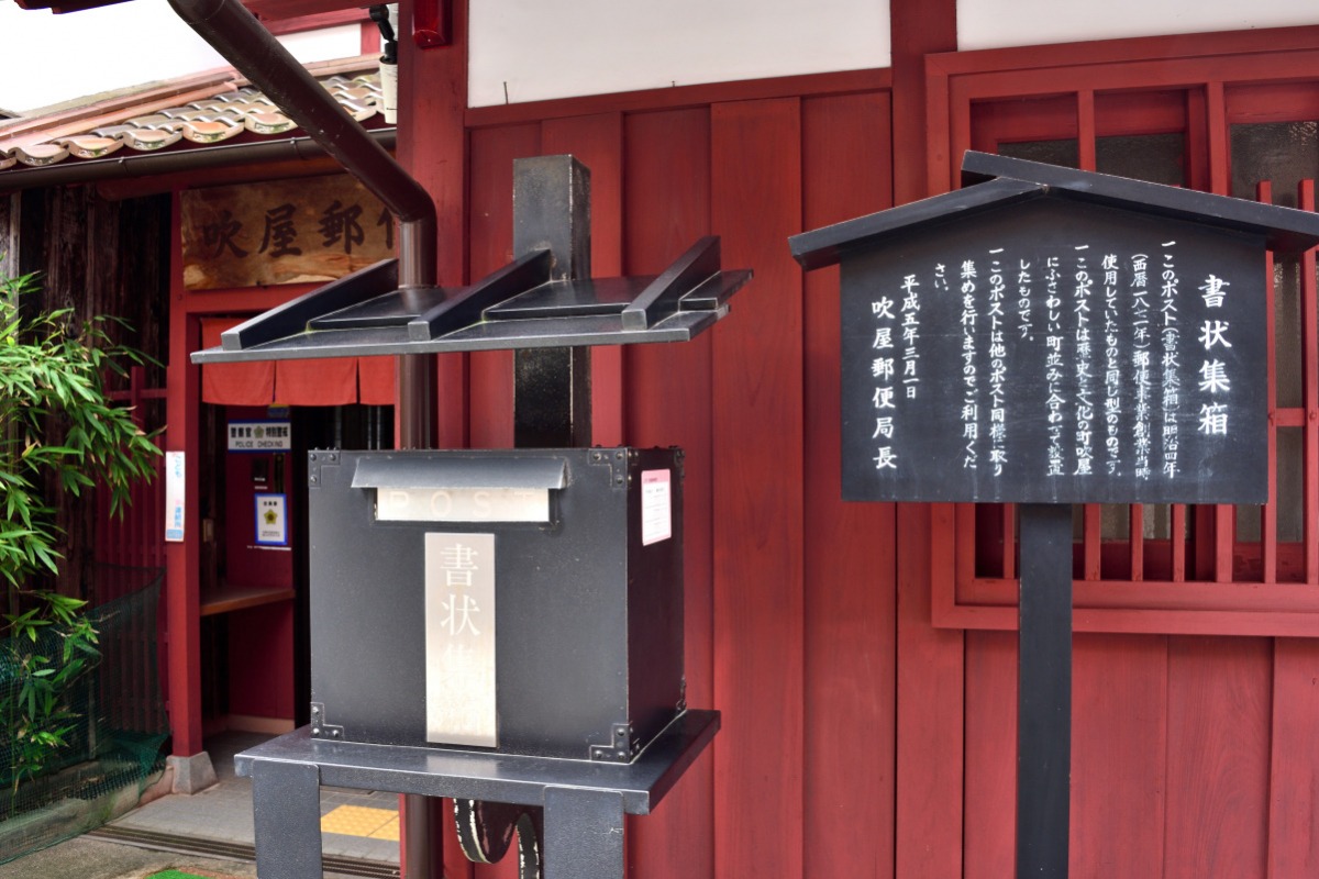 ベンガラの町の書状集箱(高梁市/吹屋ふるさと村 吹屋郵便局前)