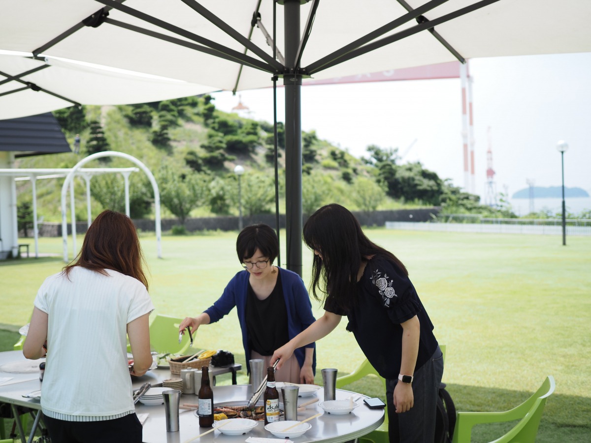 美しい芝生と瀬戸内海が眺められるロケーション。心地いい風を感じながら、開放感溢れる空間で食べるとさらに美味しいバーベキュー!
