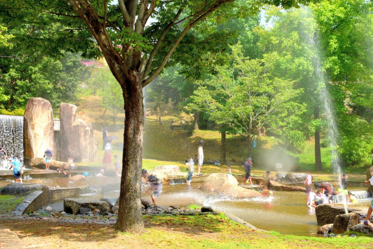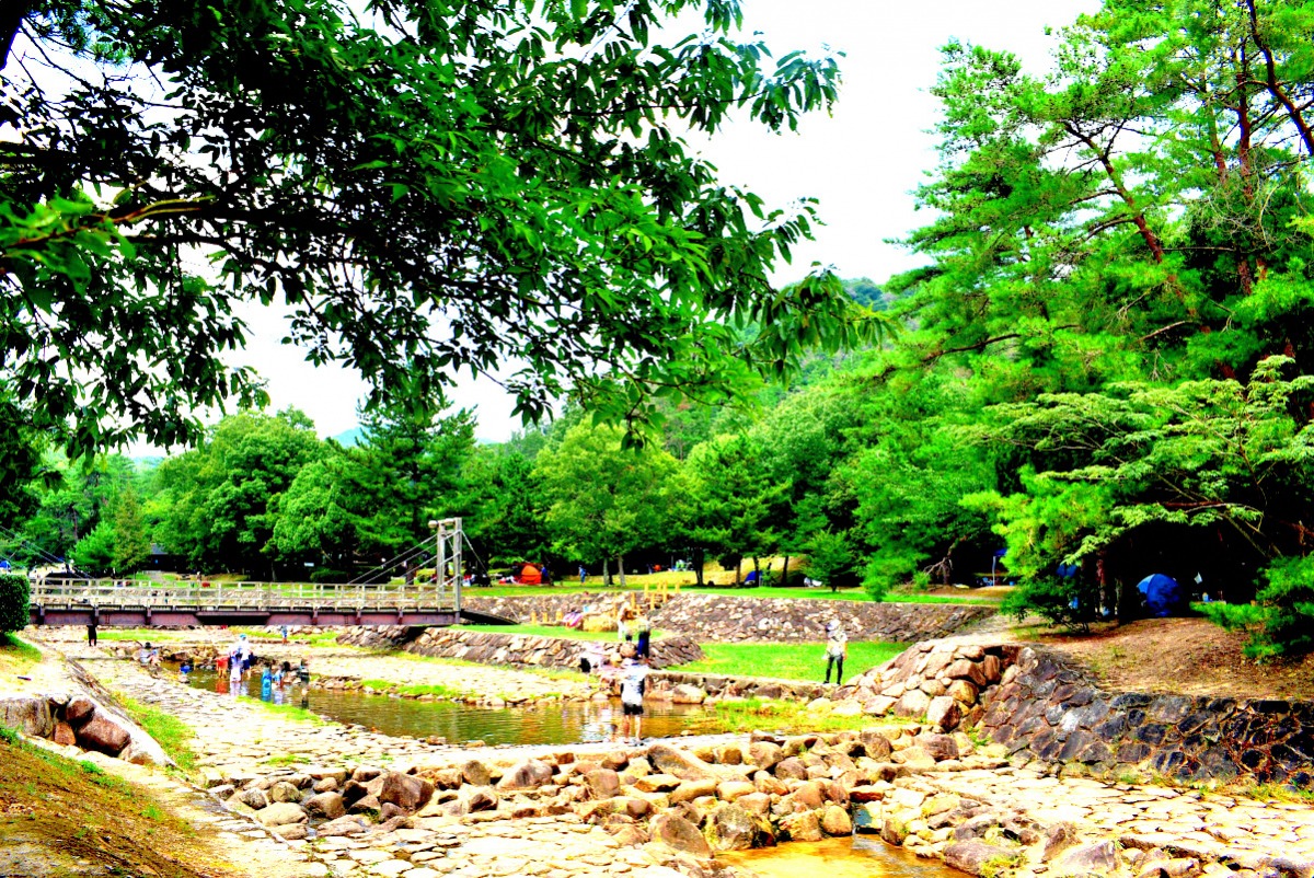 砂川公園から車でわずか10分程のところに、隠れた水遊びスポットが!自然の川の流れ。涼をとれる木陰。流れも緩やかで、水深も浅いので、小さなお子さん連れがのんびり遊んでいました。広い園内はとってもキレイに整備されていて、ウッドデッキの遊歩道や桃太郎キャラ勢ぞろいの遊具なども!人混みを気にせず過ごせるおすすめ公園です!
