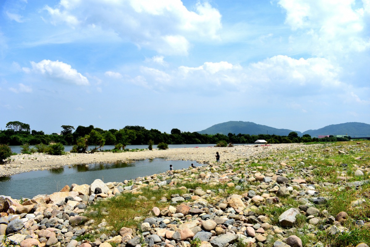 一見した限りでは河原?いえいえ実は、子どもたちが安全に川遊びができるように手が加えられた自然体験スポットなんです!入り江のようなワンドエリア、石で仕切られて浅くなっている遊水路など。本流に入らなくてもしっかり自然も感じられる!開放感たっぷりの水辺です。河原まで車を乗り入れられるので、川ビギナーでも気軽に川遊びができました!