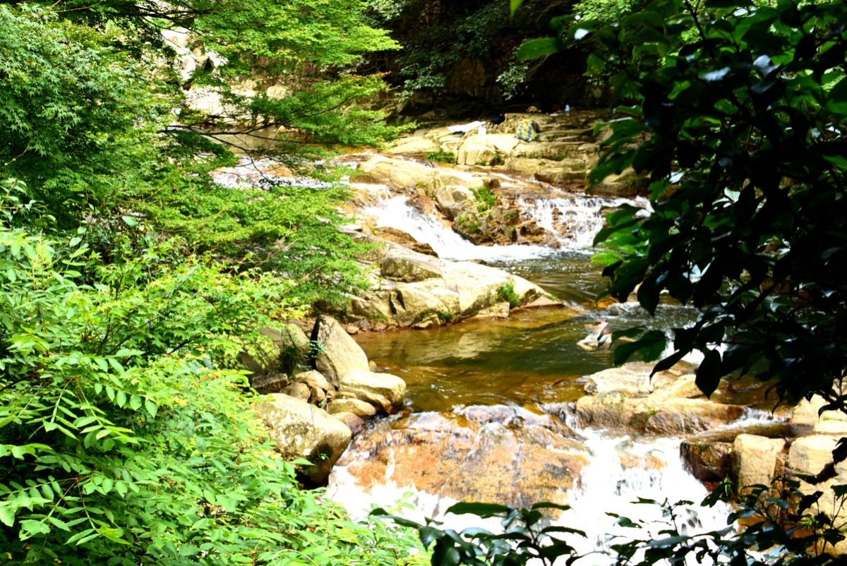 県道57号線沿いにつづく渓谷のオアシスです!万緑と木陰。ヒンヤリ冷たい川のせせらぎ。夏だって豪渓!と言いたい位の清涼感。総社市街地からたった20分程でこの秘境感。木漏れ日を眺めながら、ちょっと足をつけるだけでもリフレッシュできますよ!屋根付きの休憩所やきれいなトイレなどもしっかり完備。