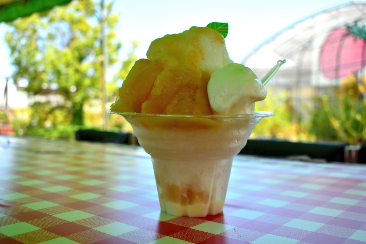 コンポートもソースも桃づくし!の「白桃」かき氷は満足感たっぷり!器の底まで幸せ心地に包まれますよ。他にもブドウやブルーベリーなどを使ったスイーツが季節ごとに登場。シーズンを問わず楽しめるのも直売所だからこその魅力ですね!ドッグラン横の開放的なテラスで、かわいいワンちゃんたちに癒されながら、ジェラートやサンデーをいただきましょう。