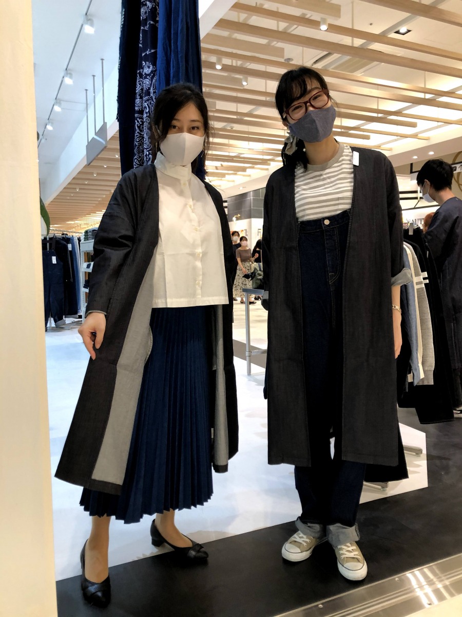 私は倉敷市の清心女子高校出身で、当時、夏の制服が青色のプリーツスカートでした。以来、私服に採り入れたことはなかったプリーツに今回、大人になってから初挑戦。すごく着やすい!室山店長に今回提案していただいたおかげで着こなしの幅も広がり、とっても楽しかったです♪