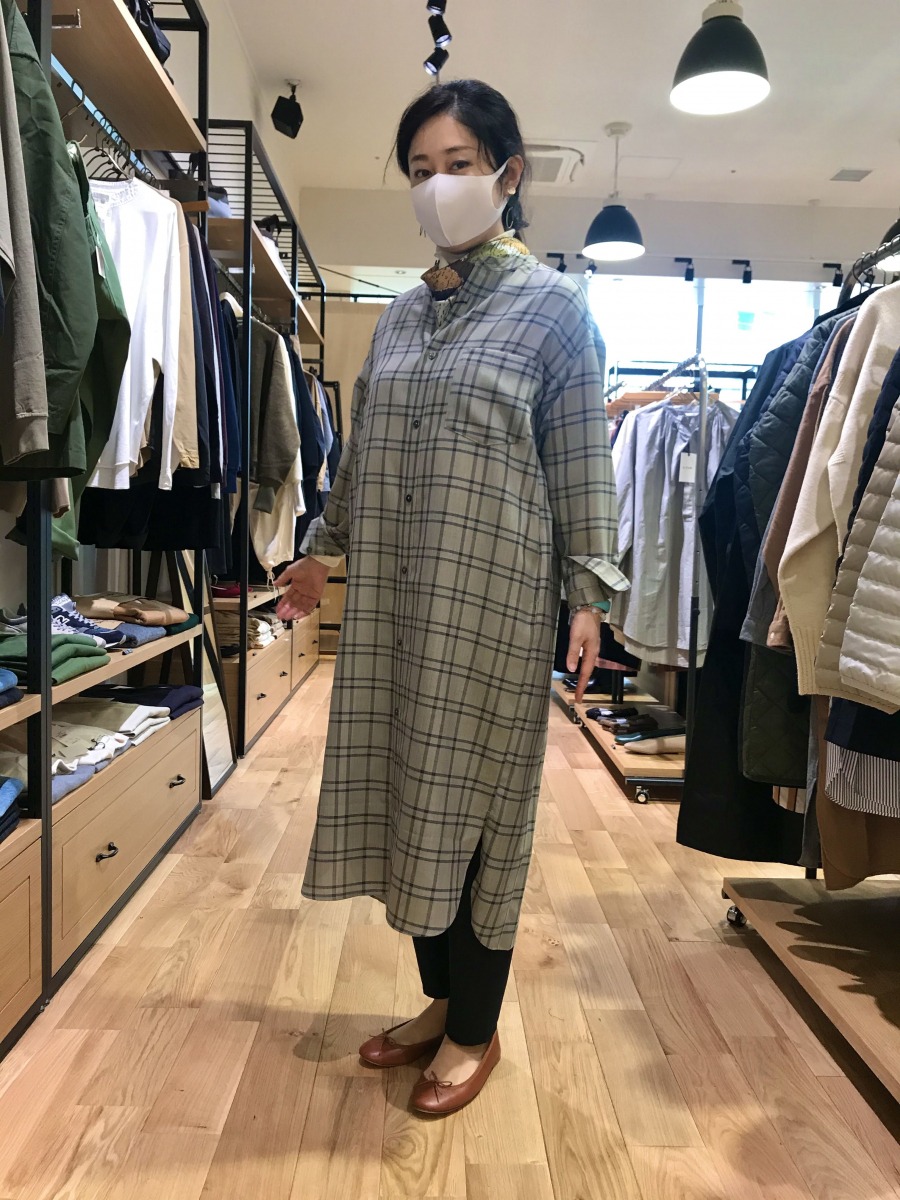 長めの服は重く感じるかな、と思い込んで自分では着なかったのですが、このシャツは薄手でやわらかい素材。縦ラインがすっきり見えて、上に着ても楽に羽織れます♪ コーディネートしていただくと、見ていただけではわからなかった着心地のよさも体感でき、新鮮な発見に嬉しくなりました。