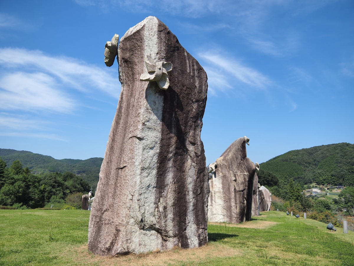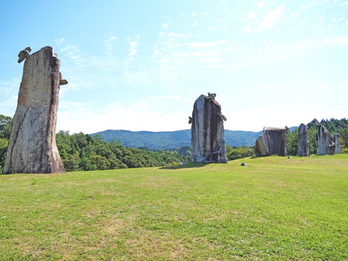 石の風ぐるまは彫刻家・門脇おさむ氏が製作。